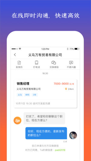 3.新增交换功能,双方同意后可进行信息交换,联系方式多样化
