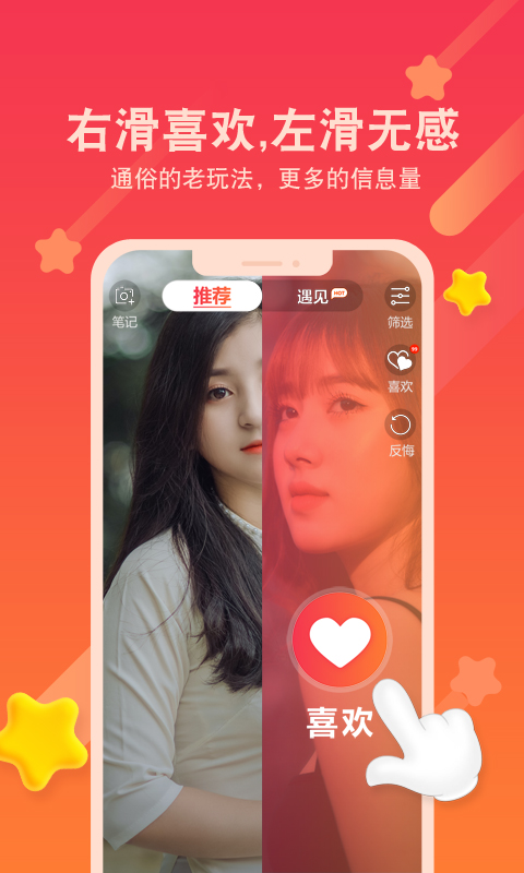 根据用户的兴趣、动态、个人资料及位置信息,智能计算并推送身边的优秀伙伴,助力用户结识有趣的新朋友,实现实时交友的乐趣。