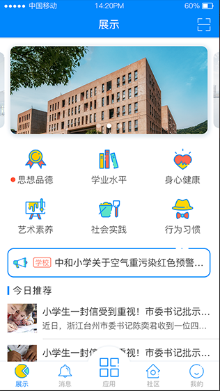 十力校园APP内置社区交流功能,便于教师间、教师与家长间的即时沟通,同时促进教师间公文流转与通知发布,营造纯净的教育圈。教师与家长可共享学生成长的点滴,系统还会根据每位学生的独特发展特点向家长推荐相应的教育读物,从而促进家校之间的紧密联系,助力每位学生的个性化发展。