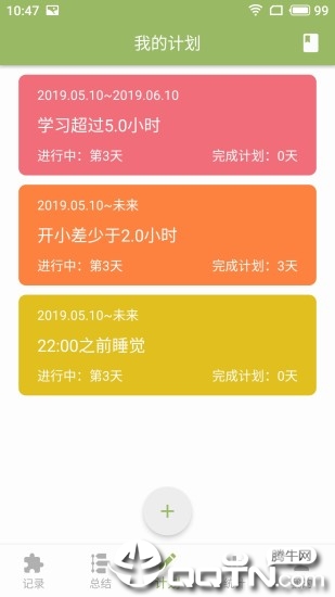 计划:以卡片形式制定周期计划,为每一天的自我加油。