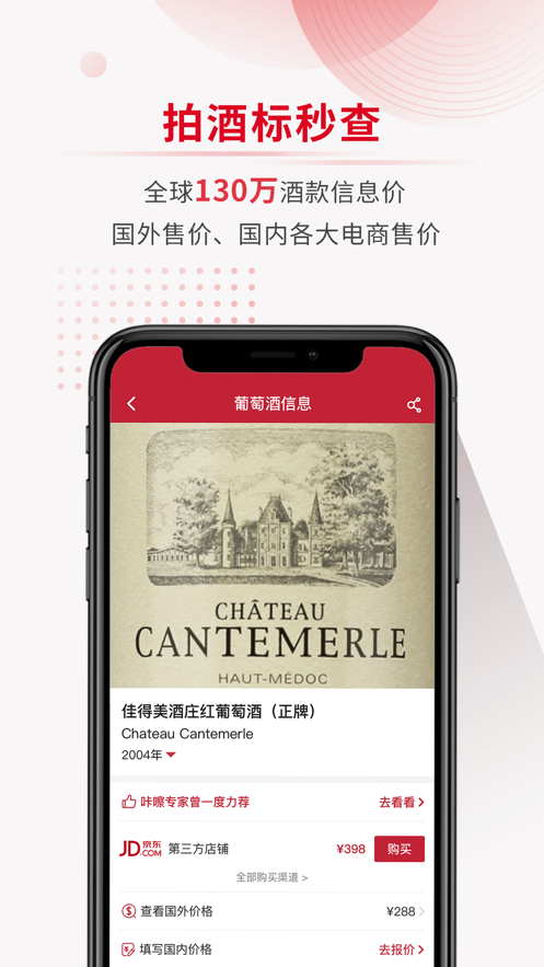 一旦发现心仪的美酒,支持各大商城进行比价,确保您绝无买贵之忧。