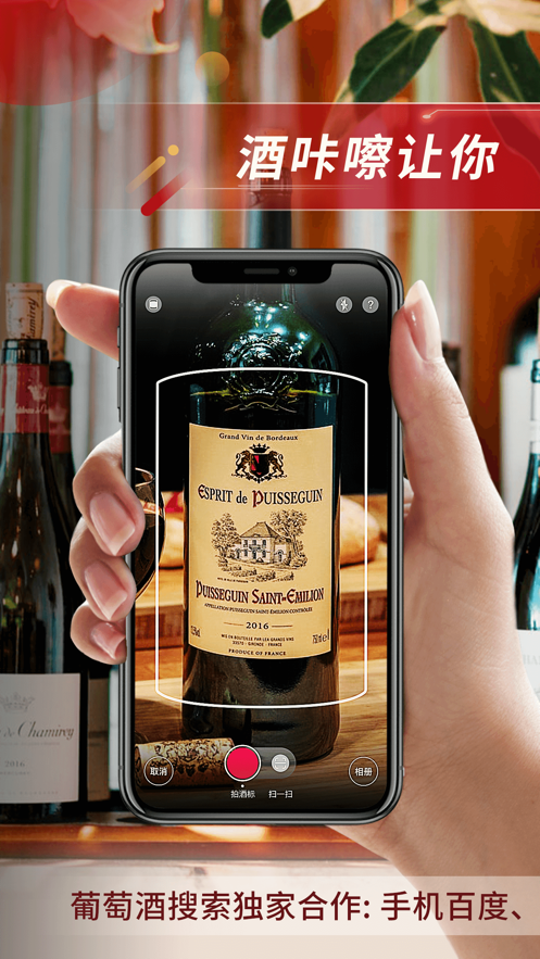 酒咔嚓提供专业的酒标识别功能,轻轻一拍酒标,尽享全球美酒的魅力。