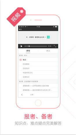 《考试随身学》是一款专为公务员考生精心设计的学习应用程序,全面同步国家权威的2017年考试大纲,配备国家正式考试教材,迅速录制2017年教程视频,并支持下载,诚邀您前来体验。