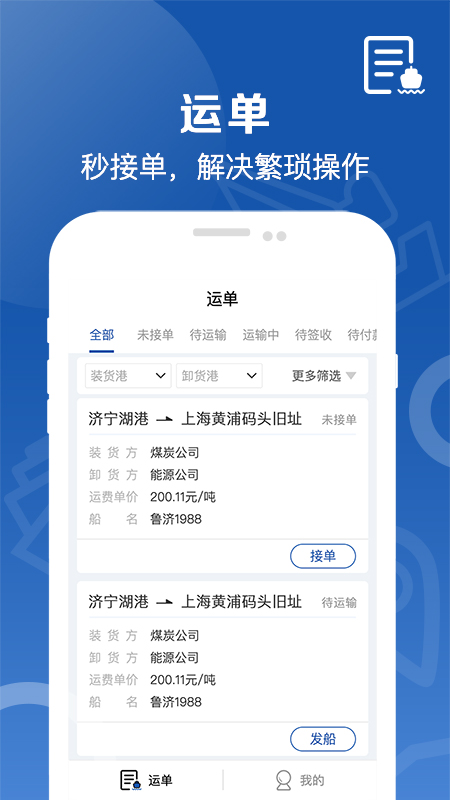 海量货源,独家渠道,致力于为船东提供真实丰富的货源信息,简化操作流程,运费结算直达,让货运管理愈加智能化。
