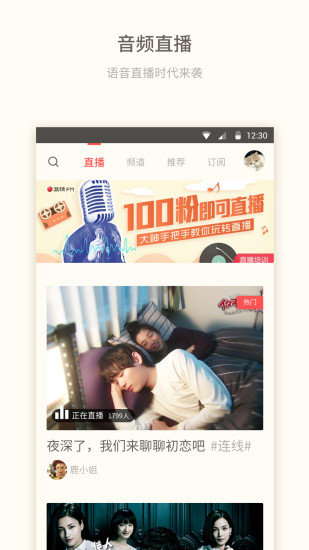 功能热力上线,随时随地收听音频,与主播及其他听众互动,海量精彩内容尽在荔枝FM,人人皆可成为主播,让声音的才华得以绽放!