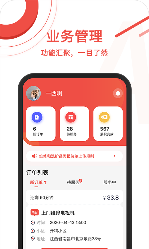 生意一手掌握:成交额、服务状态、订单数等核心经营数据尽收眼底。