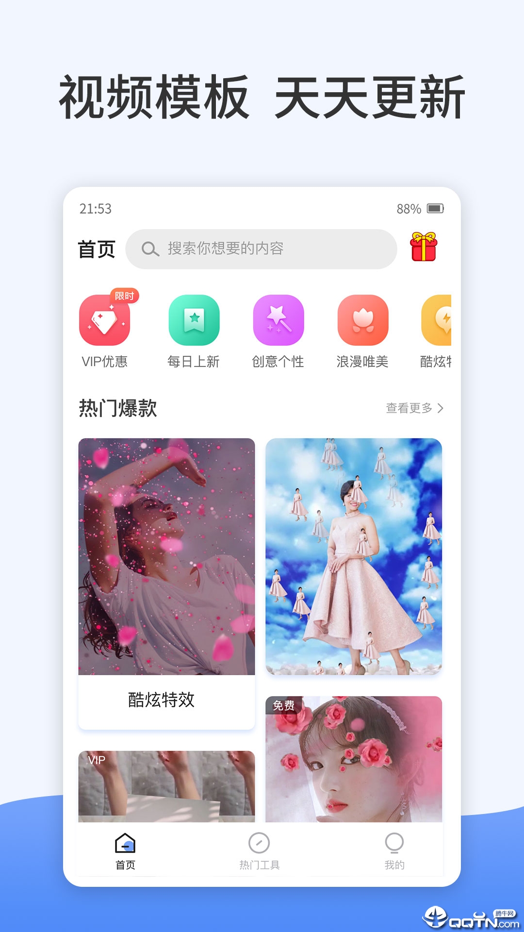 【视频模板】每日更新大量创意视频模板,支持表白、娱乐等多种场景的使用。