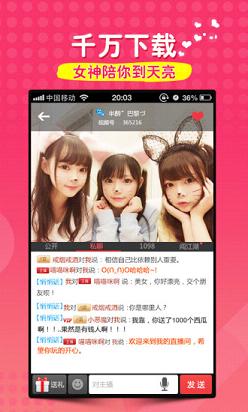 2.畅快聊:与女神零距离互动,公聊、私聊,任君选择;