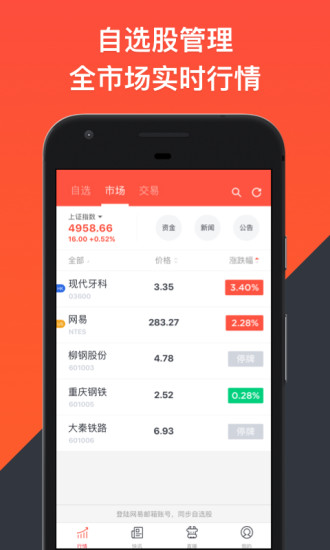 网易财经是一款集管理、股票投资资讯及牛人于一体的移动端应用。用户通过自选股功能,随时掌控个股行情,凭借自设的股票预警,轻松把握每一个买卖时机,无需紧盯市场,投资变得更加轻松。用户能够及时接收到股票资讯,并依据这些信息进行交易;资讯内容主要来源于两类:1、网易专职股票编辑的原创内容;2、第三方资讯的接入。