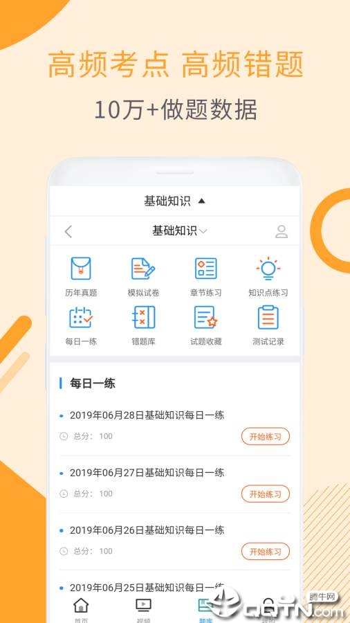 智能题库汇集了每日一练、历年真题、模拟试题、高频考点及知识点练习等丰富题目;超过十万道题库数据,随时随地打开手机即可轻松刷题。