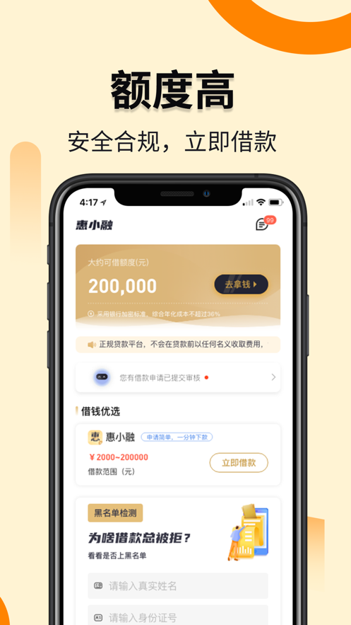惠小融贷款应用,凭借信用即可获得的大额分期借款产品;提供0-20万的信用借款额度选择;利率低、放款迅速,轻松应对资金周转难题!