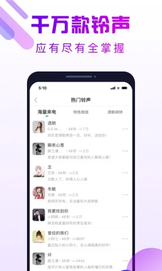 ● 海量铃声:只有您想不到的,没有您找不到的,且支持三大运营商彩铃一键设置!