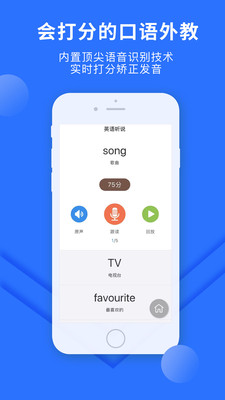 《会打分的口语外教》 内置先进的识别技术,实时为您的英语口语评分,帮助矫正发音。