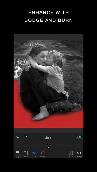 如同真正的暗房,您可以通过遮挡或增加光线,使图像的某些部分变得更亮或更暗。