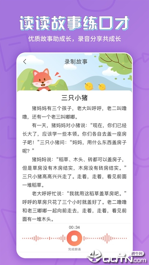 3、优质故事内容助力孩子成长,支持录音阅读,成就口才;