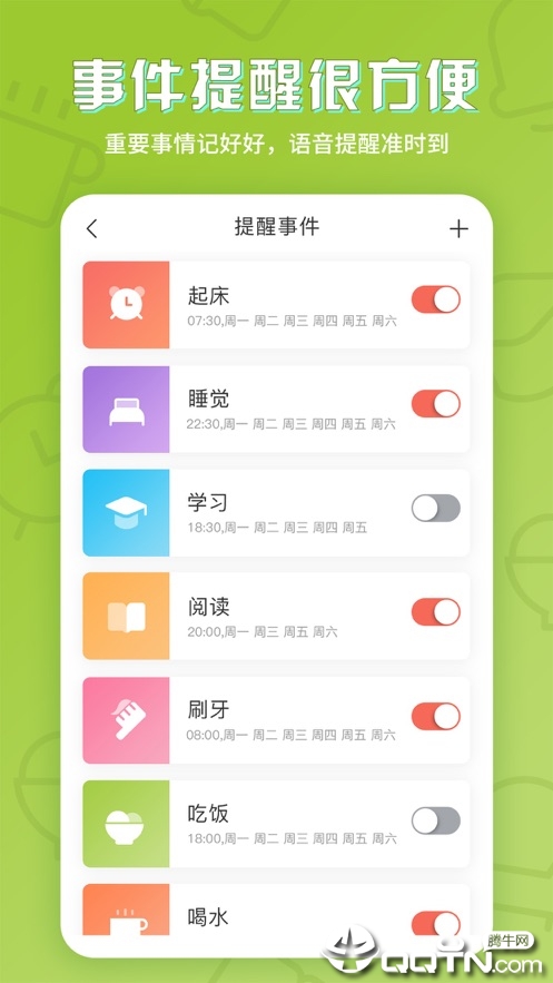 提醒事件:确保不遗漏重要事件,培养良好的生活习惯。