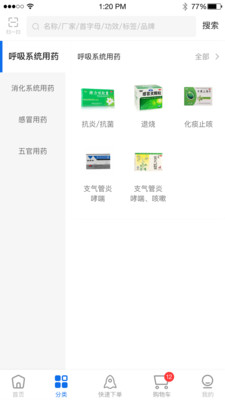 分类,分类清晰明确,方便用户查找与挑选,购药迅速高效。