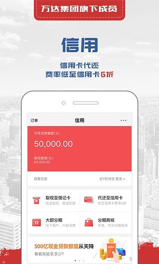 信用额度高达5万元,手续费低至每期0.5%;信用卡代还,费率可享信用卡六折优惠!