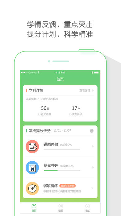 随时订正——随时随地修正老师布置的任务,让学习反馈及时而有效。
