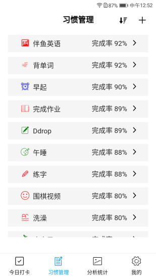 习惯评分(习惯)应用程序,专为习惯打卡与评分而设计的平台,通过每日的按时打卡,助您完成日常计划,培养良好的生活与学习习惯。应用根据您的打卡表现为您打分,使工作更加高效与专注。