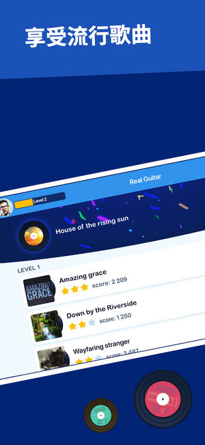 分享:音乐本应分享。弹奏吉他,尽情享受,传递积极的氛围!挑战你的朋友,争夺最高分数,证明你是顶尖的吉他手!