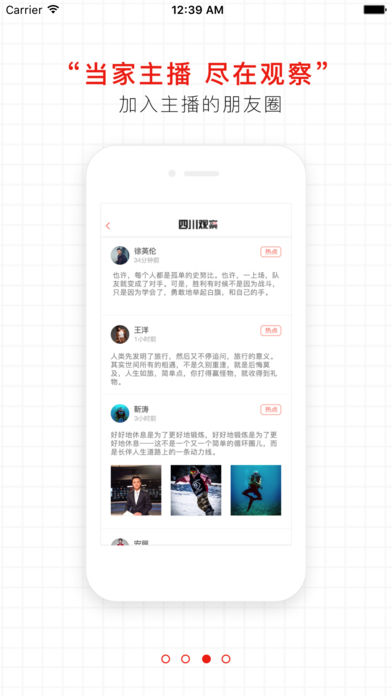《四川观察》APP以原创独家内容为核心优势,新闻事件为亮点,传递四川的权威声音,成为四川时政新闻的新媒体主流传播平台,汇聚政商圈精英人群的“朋友圈”。