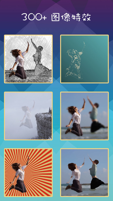 你可以创建投影,高光,描边,现代艺术,,模糊,玻璃,铅笔,动画书,马赛克等各种特效。大多是独有特色的特效。