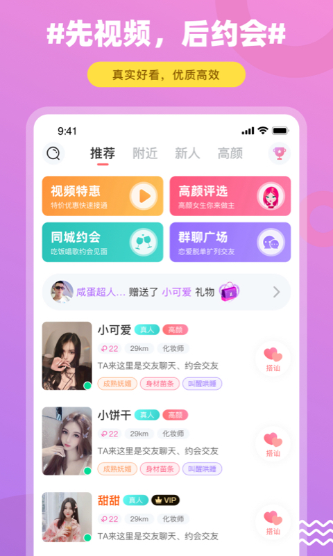 【先视频,后约会】 既真实又好看,既优质又高效,先视频聊天再约见面,可信度更高,感觉真实又亲切