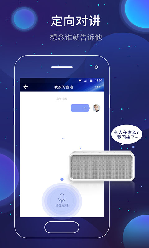 通过助手音箱发送或接收消息,实现与亲友的定向对讲!