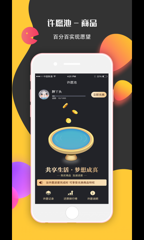 国内导购App独有的许愿池功能,100%让梦想成真,您想许下什么愿望呢?尽情期待吧!