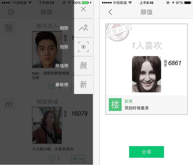 同一个人不同照片中的颜值可能有所不同,正如某人可能正面好看,侧面则别有一番风味。不同的角度展现出你的美感是各不相同的。(同一张照片的颜值评分基本相同)