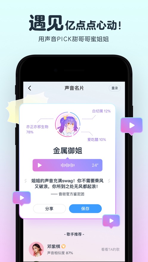 音街APP,是由出品的手机K歌软件,想唱就唱,随时随地尽情释放;优质推荐,悦耳动听!诸多神仙嗓音汇聚于此;多维度K歌评分,专业性MAX!音街鉴乐团全力认证。