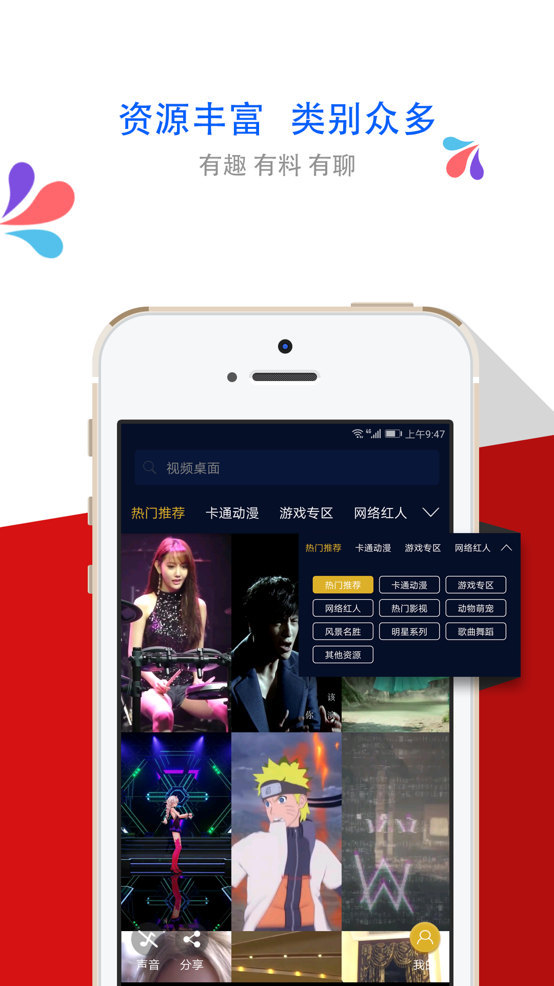 梦露视频桌面是一款颠覆传统桌面的创新之作,轻松不占内存,功能却异常强大!拥有丰富的资源,用户可自由选择;实现个性化定制,打造专属桌面;操作简单,极易上手。最新更新增添了搜索功能,一键查找,再也无需担心找不到心仪的视频来装点桌面!