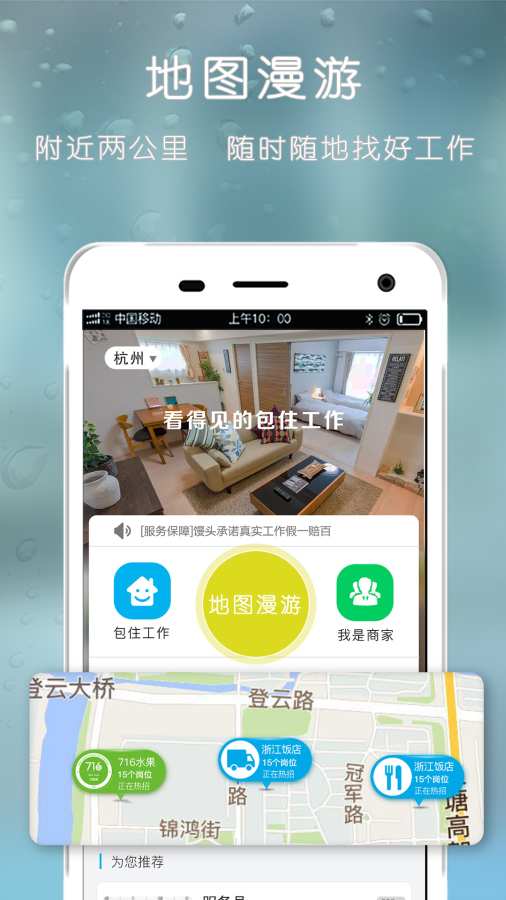 馒头工作是杭州小喵科技公司推出的一款应用程序,区别于以往的版本,馒头工作包住版特别为需要住宿的求职者量身定制,旨在为求职者提供更加便捷的求职体验。