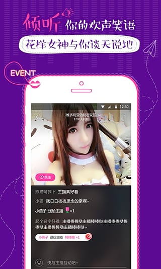 还在幻想与心中的女神相遇于YY之中?那可真是时代的落伍!快来花样,邂逅属于你的真实女神吧!屌丝逆袭白富美的梦想不再遥远!