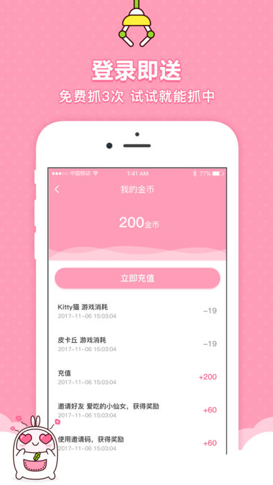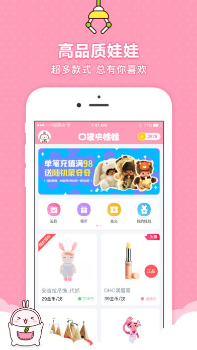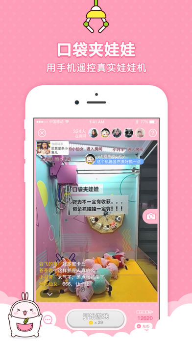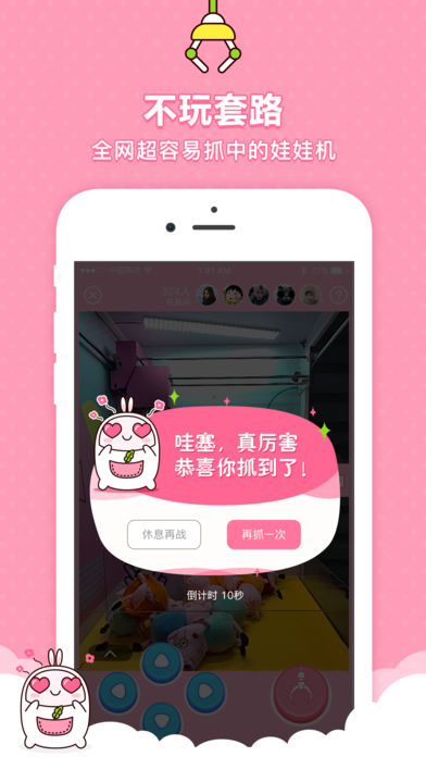 口袋夹娃娃App手机版是一款免费的线上应用,通过手机抓取娃娃,真实而有趣,带来无限乐趣。所有抓到的娃娃,均可享受全国包邮直送到您手中;它采用了最真实的场景设计,开阔的视野与丰富多样的娃娃种类,让您随时随地尽情享受抓娃娃的乐趣。