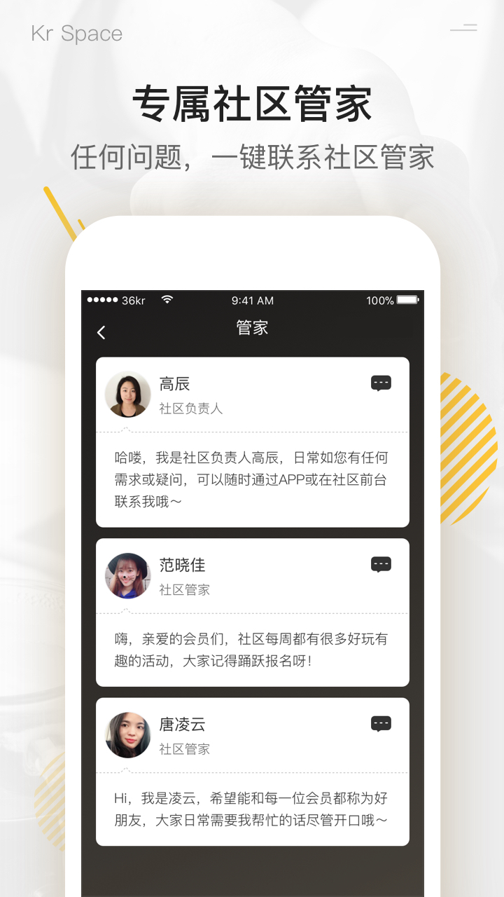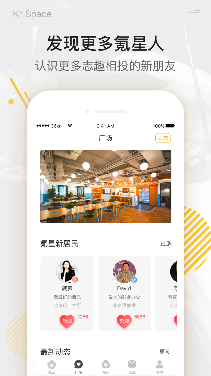 氪空间App是一个汇聚社区内所有创新者的互动平台。无论身处何地,您都可以在此平台上发布信息,与全国其他会员共同探讨创新理念,寻求互动与合作。