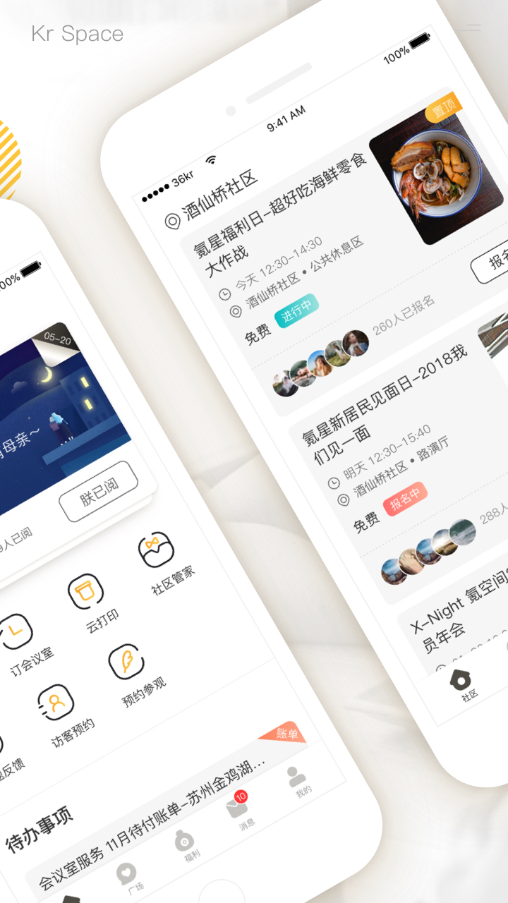 此外,会员可通过App预约各类社区的会议室与办公空间,随时随地满足办公需求。