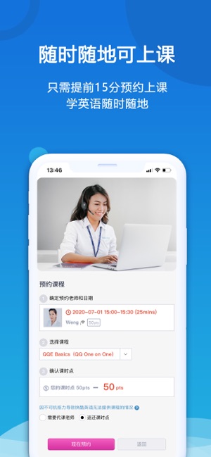 3、随时随地可上课:仅需提前15分钟预约,学英语无时无刻不在。