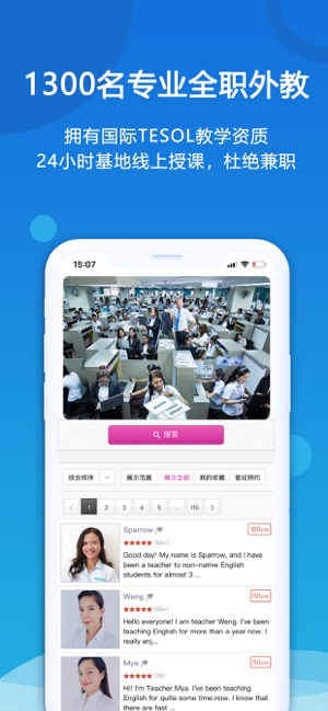 2、1300名专业全职外教:持有国际TESOL教学资质,24小时基地在线授课,保障学习质量。