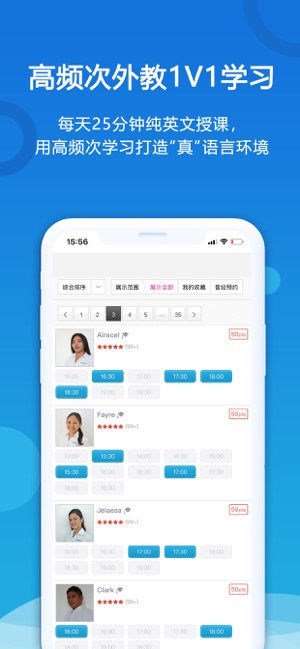 4、高频次外教1V1学习:每日25分钟的纯英文授课,以高频次学习打造真实的语言环境。