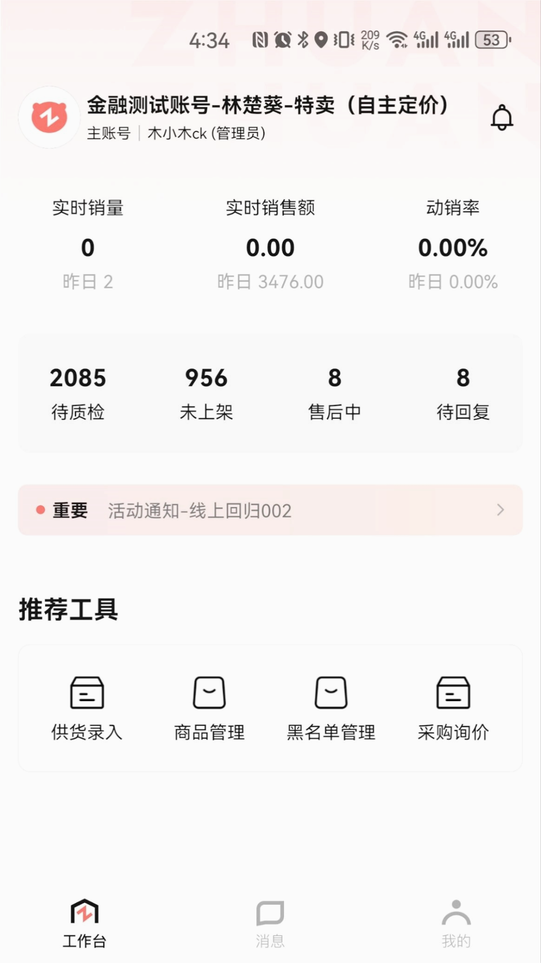 转转通为转转商家提供二手生意管理工具,具备供应商品、售卖商品等功能模块,支持一站式管理供应商品,随时随地查看用户售卖数据、支持管理商品价格,助力转转商家提高用户的店铺运营效率。