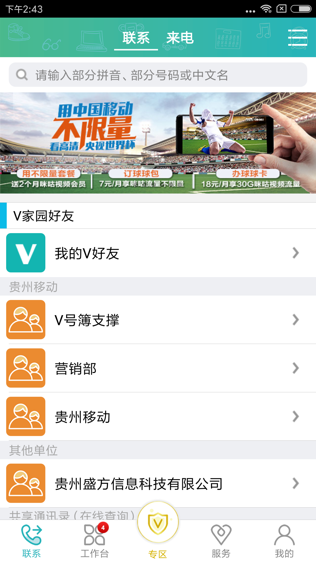 移动V号簿是由中国移动贵州公司开发的一款针对党政机关和企事业单位的手机应用。