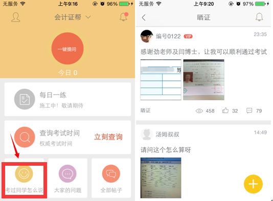 5:点击“考过同学怎么说”,可以查看到一些考过同学的晒证和相关评价。
