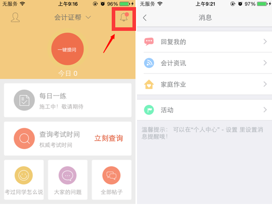 8:点击右上角“铃铛”,可以查看自己的消息。