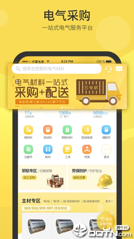 云电材app下载,为用户提供优质的一站式电材采购服务,在云电材app小伙伴们可以更快更全的选购电材,电气材料采购配送全搞定,欢迎下载体验!