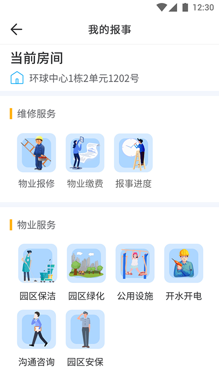 物业报修、物业缴费、报事进度