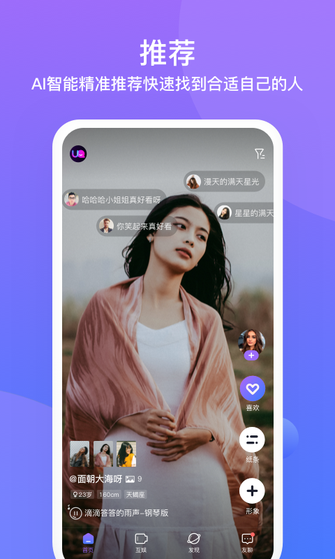 结合大数据精准推荐,为用户高效的匹配到合适自己的朋友,让好友关系快速升温。