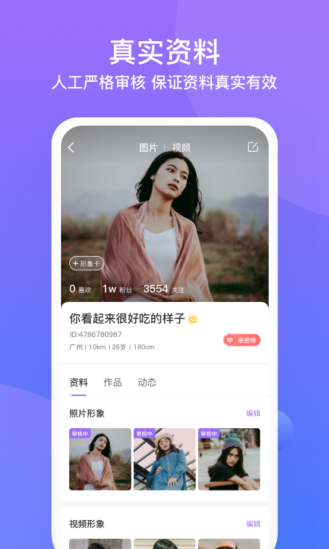 【真实】用户的资料均人工审核后才被推荐到首页进行匹配交友的。