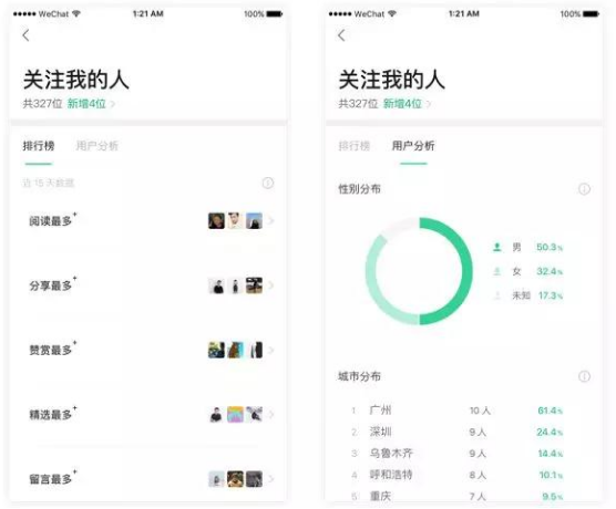 -用户管理:使用关注者排行榜来了解你的核心读者,或使用数据统计来了解文章阅读、用户分享情况。